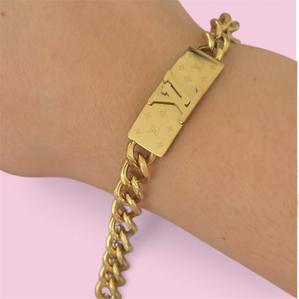 LV NamePlate Cuban Chain Stainless Steel Bracelet