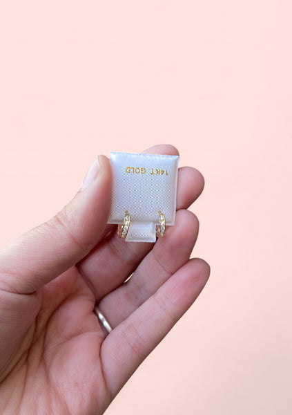 14k Gold Mini Hoop Rhinestone Earrings