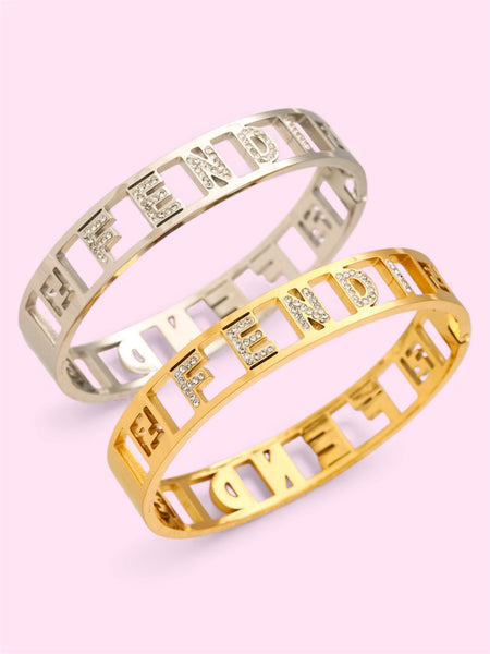 Elevate your style with our F Zircon Bangle Stainless Steel Bracelet. Crafted with durable stainless steel, this bracelet is both chic and functional. The gold and silver tones add a touch of sophistication to any outfit. Perfect for any occasion, this bracelet will become a staple in your jewelry collection.