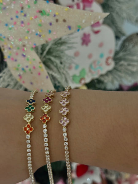 This Gold Colorful Clover Tennis Stainless Steel Bracelet is a stunning piece that combines elegance and durability. Crafted with high-quality stainless steel, it features a beautiful gold finish and colorful clover-shaped charms. Perfect for adding a touch of sophistication to any outfit, this bracelet is built to last and will make a statement wherever you go.