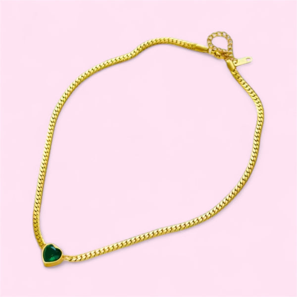 Elevate your style with our Gold Cuban Chain Heart Pendant Bracelet & Necklace. Made with high-quality stainless steel in a beautiful combination of white and green, this piece exudes elegance and durability. Perfect for any occasion, this necklace and bracelet set adds a touch of sophistication to any outfit.