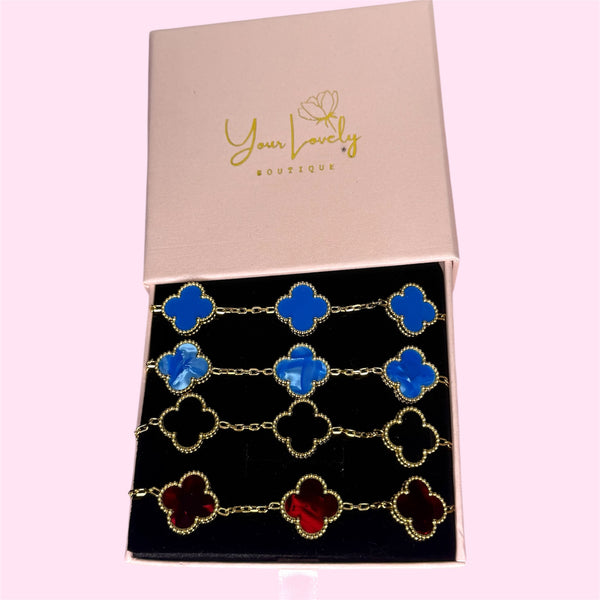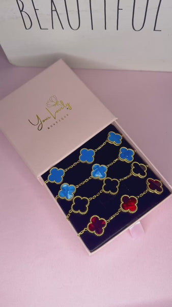 Gold Ocean Blue Marble Clover Stainless Steel Bracelet