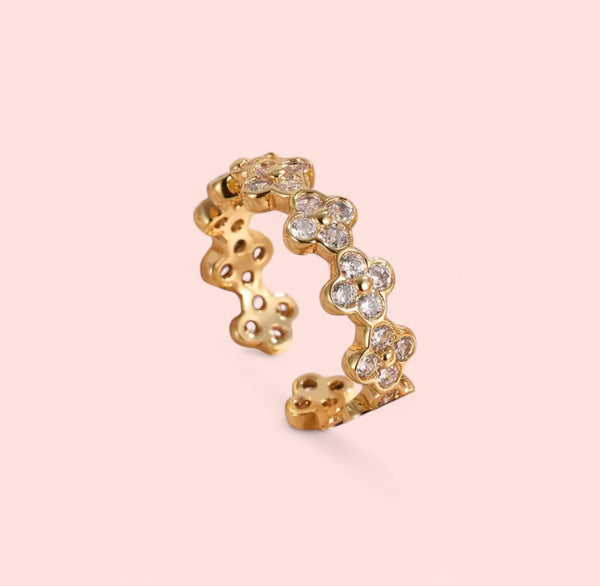 This Gold Rhinestone Stainless Steel Adjustable Ring is the perfect accessory for any occasion. Made with high-quality stainless steel and adorned with shimmering rhinestones, this ring is both stylish and durable. The adjustable design allows for a comfortable fit and makes it suitable for any finger size. Elevate your look with this elegant and versatile ring.
