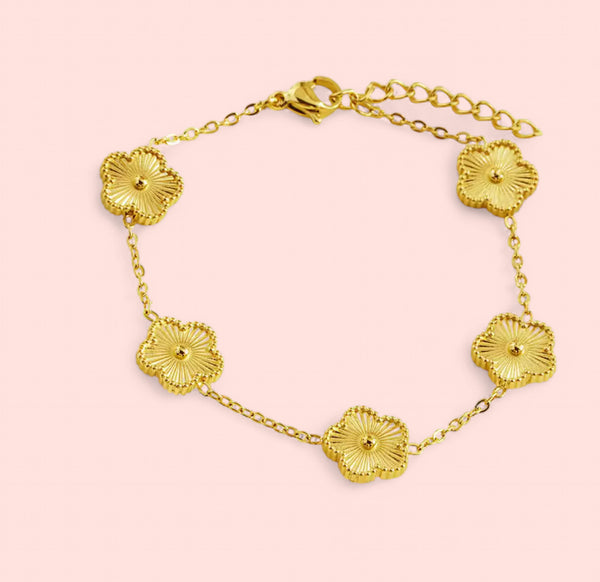 This Golden Clover Bracelet is expertly crafted from high-quality stainless steel, ensuring durability and a luxurious shine. The intricate clover design adds a touch of elegance to any outfit, making it a versatile and stylish accessory for any occasion. Perfect for those looking for a durable and sophisticated piece of jewelry.