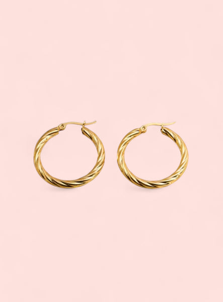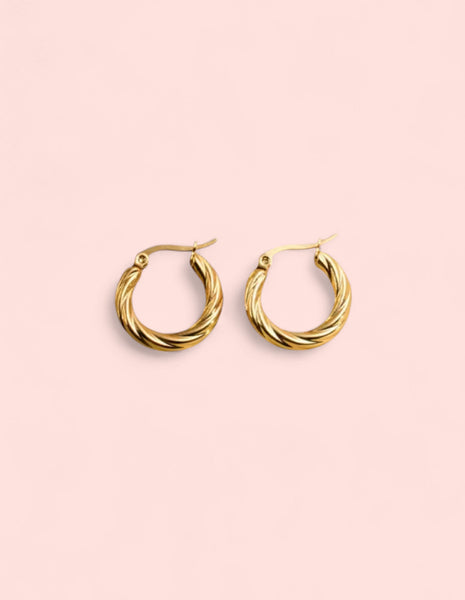 Expertly crafted with stainless steel, these Golden Twist earrings will add a touch of elegance to any outfit. Their unique twist design adds a modern twist to a classic style. The stainless steel material ensures durability and longevity, making these earrings the perfect addition to your jewelry collection.