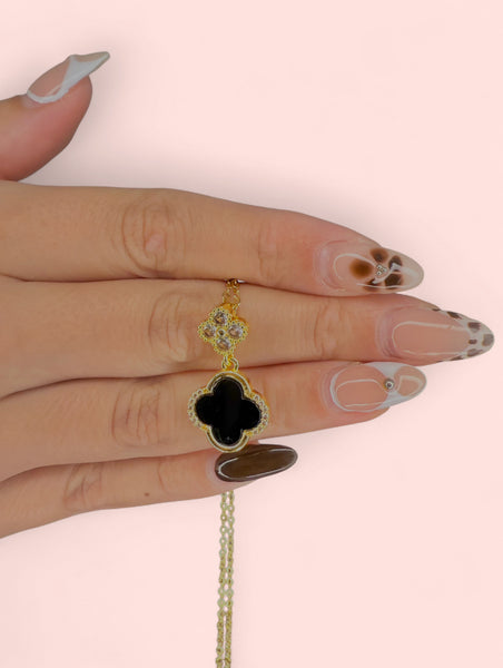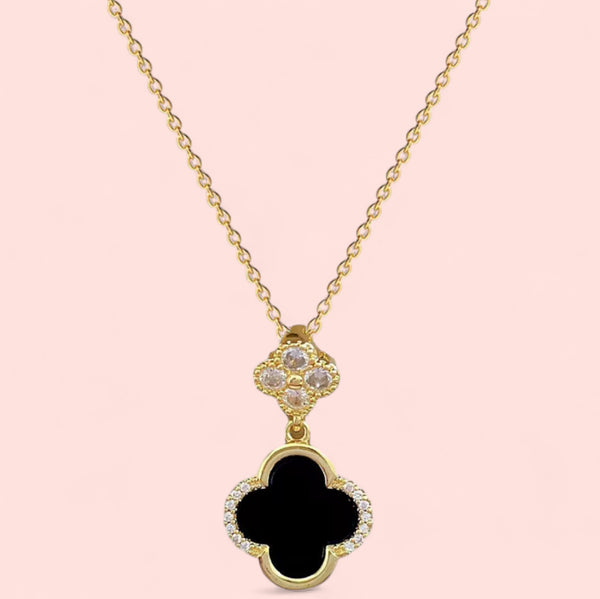 Expertly crafted, the Luxe Clover Zicron Stainless Steel Necklace and Earrings Set is the perfect blend of sophistication and style. Made with high-quality materials, the set features stunning black and white clover-shaped zirconia stones that add a touch of elegance to any outfit. Add this set to your jewelry collection for a timeless addition that will never go out of style.