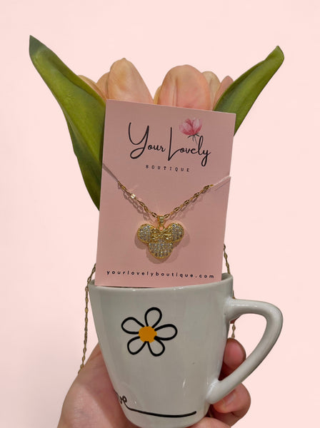 Elevate your style with our Disney Minnie Mouse necklace, adorned with sparkling rhinestones for a touch of glamour. Crafted from tarnish-free stainless steel, this enchanting accessory ensures lasting beauty and timeless charm. Embrace the magic of Minnie with a piece that effortlessly combines whimsy and elegance.