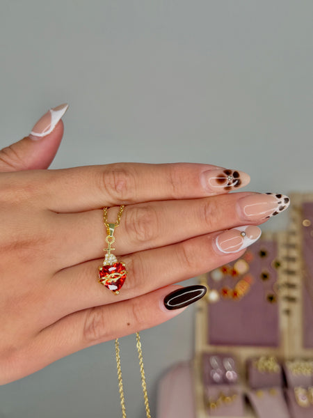 This Sacred Heart Sagrado Corazón Stainless Steel Necklace is expertly crafted to showcase the beauty and significance of the Sacred Heart symbol. Made of durable stainless steel, this necklace is a timeless piece that is perfect for daily wear. Its elegant and meaningful design makes it a thoughtful gift for anyone seeking to express their faith.