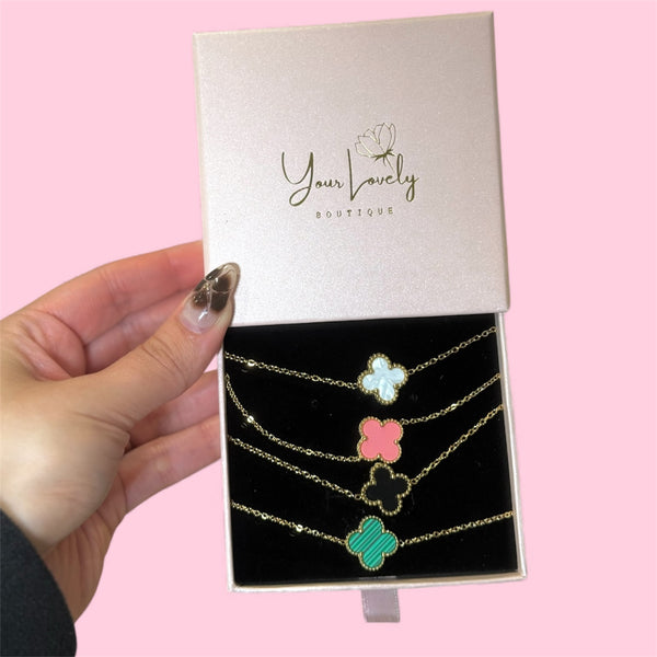 Elevate your style with our Single Clover Stainless Steel Bracelet. Available in stylish White, Coral, Black, and Green, this bracelet is made of durable stainless steel and features a delicately elegant clover design. A stunning addition to any outfit.