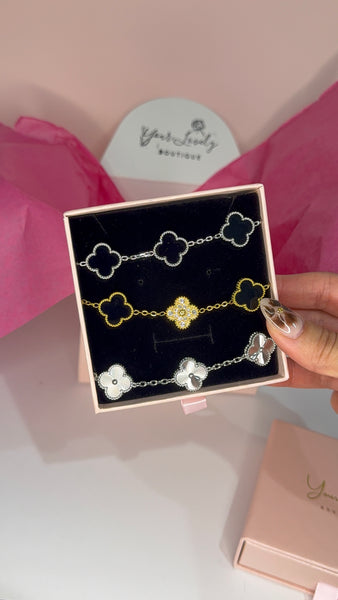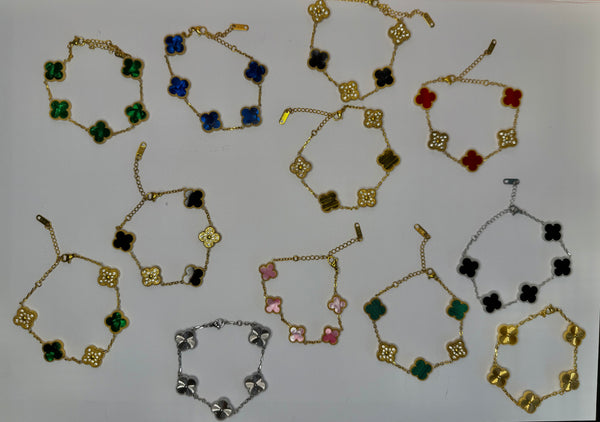 Made of high-quality stainless steel, these Gold Clover Bracelets come in four colors: green, red, white, and black. Each bracelet features a charming clover design, adding a touch of luck to any outfit. Durable and stylish, these bracelets are perfect for any occasion.